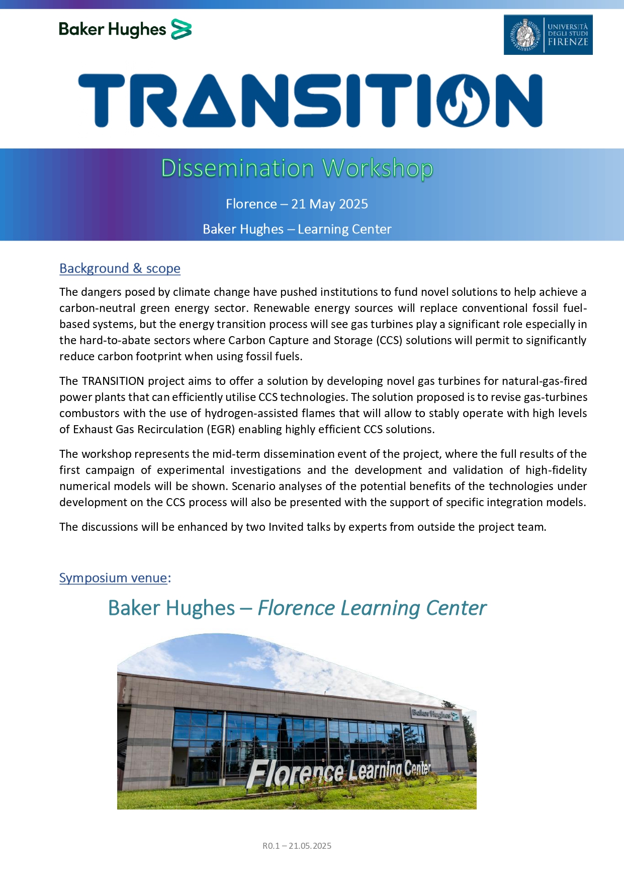 The event represents the planned mid-term dissemination action of the project, and will showcase the TRANSITION partners’ recent achievements in improving knowledge on the use of ๐๐๐ฅ (Exhaust Gas Recirculation) in heavy-duty gas turbines to enable more efficient adoption of carbon capture technologies (๐๐๐จ๐ฆ).